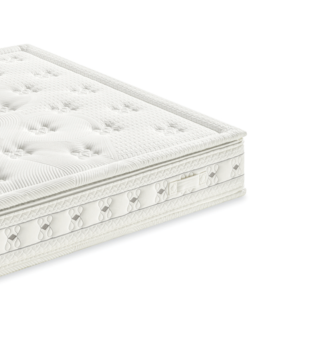 Il profilo superiore in Fresh Memory assicura accoglienza e traspirabilità, il box spring con rinforzi laterali ad alta densità garantisce stabilità e durata nel tempo.